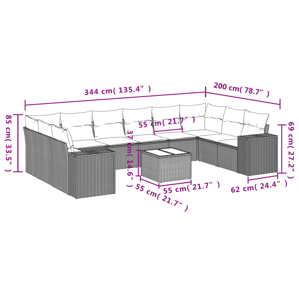 vidaXL ガーデンソファ11点セット クッション付き ポリラタン製 グレー