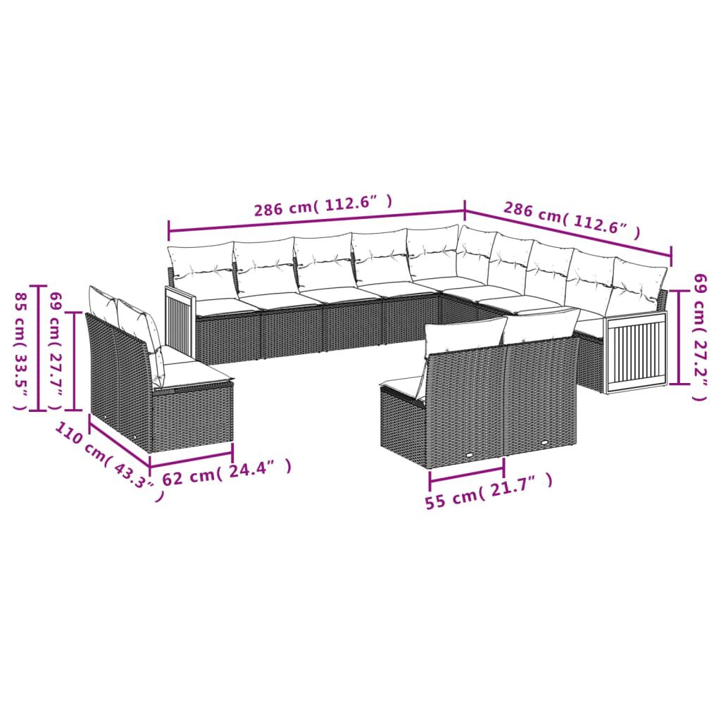 vidaXL ガーデンラウンジ13点セット クッション付き グレー ポリラタン製