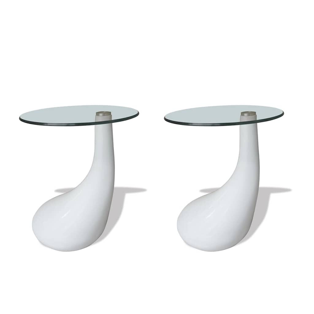 この小サイズのコーヒーテーブル/サイドテーブルセットは、リビングスペースのインテリアを惹き立てる、ゴージャスなデザインが印象的です。 ユニークな水滴形のベースは、ハイグロスホワイト仕上げでお届けします。テーブルにシックな印象を与えます。リビングのソファやカウチの側に配置するのにぴったり。 寝室に配置すると、飲み物など必須アイテムを手が届く範囲に置くエンドテーブルとして大活躍。 テーブルトップは、安全のために強化されています。