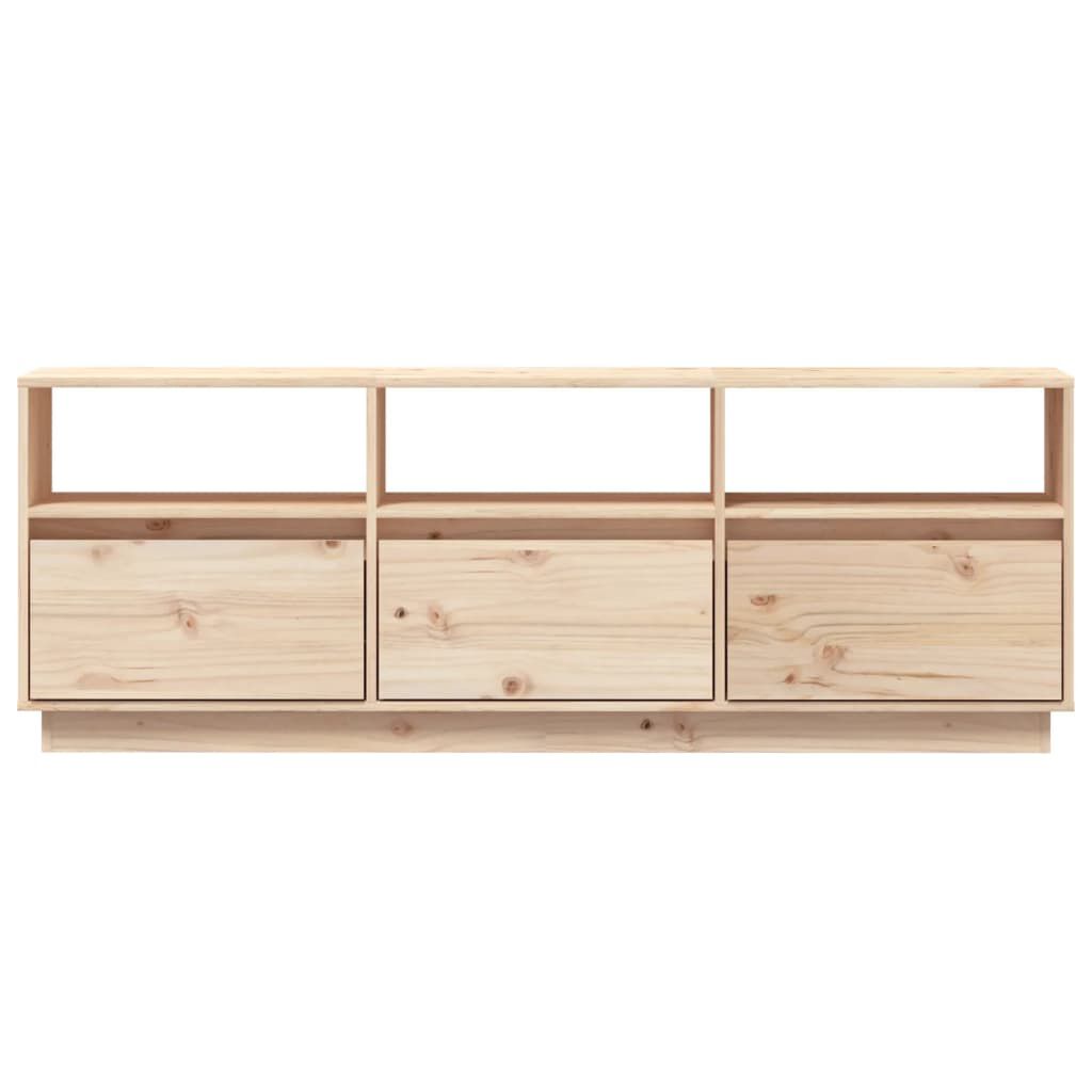 パイン無垢材を使用した、安定性と耐久性に優れた浮き式脚付きローボードです。3つのコンパートメントと3つの扉を備えたこのステレオキャビネットは、DVDやゲーム機、雑誌などをすっきりと整理して収納するのに最適です。湿らせた布で簡単にお手入れできます。
