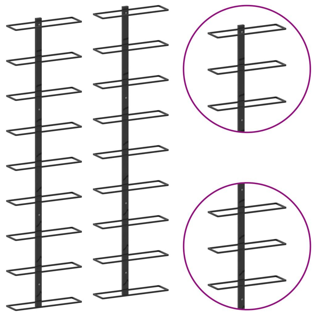 お届け内容は、ワインラック2点で、最大18本のワインを収納できます。粉体塗装の鉄製なので、耐久性に優れ、お手入れも簡単です。ワイン好きのお友達やお知り合いへのプレゼントにもぴったりです。付属の取り付け部材を使えば、ワインラックを簡単に壁に取り付けできます。組み立ても簡単です。