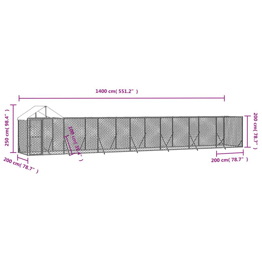 vidaXL 屋外犬小屋 屋根付き シルバー 14x2x2.5 m 亜鉛メッキ鋼製
