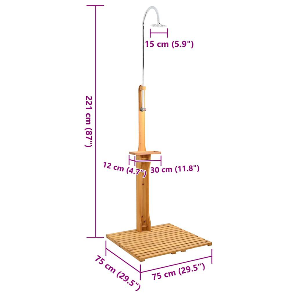 この木製ガーデンシャワーは硬材とモミ材を使用しています。どちらも耐候性、耐久性に優れています。 日差し、雨、霜に強い木製ガーデンシャワー。キャンプや泳いだ後に、裏庭での涼しいリフレッシュタイムにぴったりです。 回転式シャワーノズルと調整可能な水圧ノブ付きで、機能的。