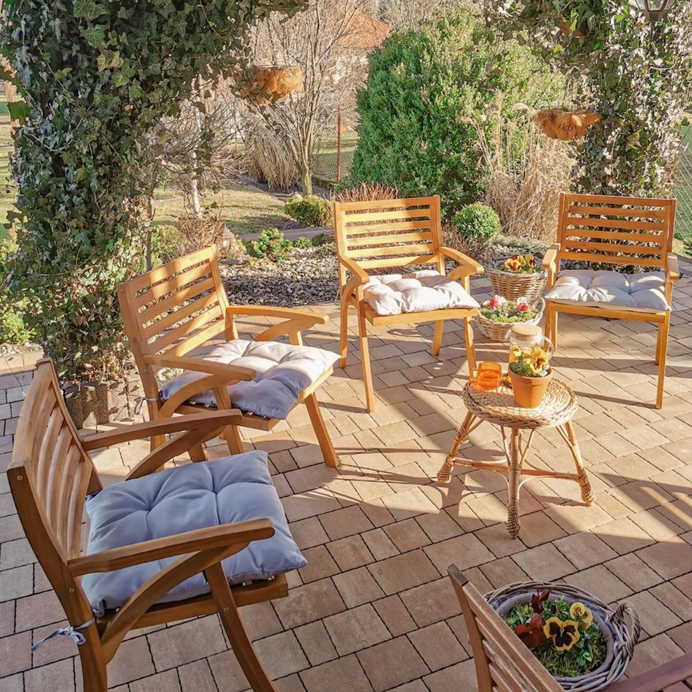 Ewaは、仕事やくつろぎの時間、社交の場に最適な居心地の良い空間を作るために庭をデザインするのが大好きです。時代に左右されない色鮮やかなクッションが付いたアカシア材のガーデンチェアなど、彼女のお気に入りを見てみましょう。「これらの椅子は美しくて耐久性があり、温かみのある色が庭での私のお気に入りの場所に、居心地の良さをプラスしてくれるんです」と彼女は言います。