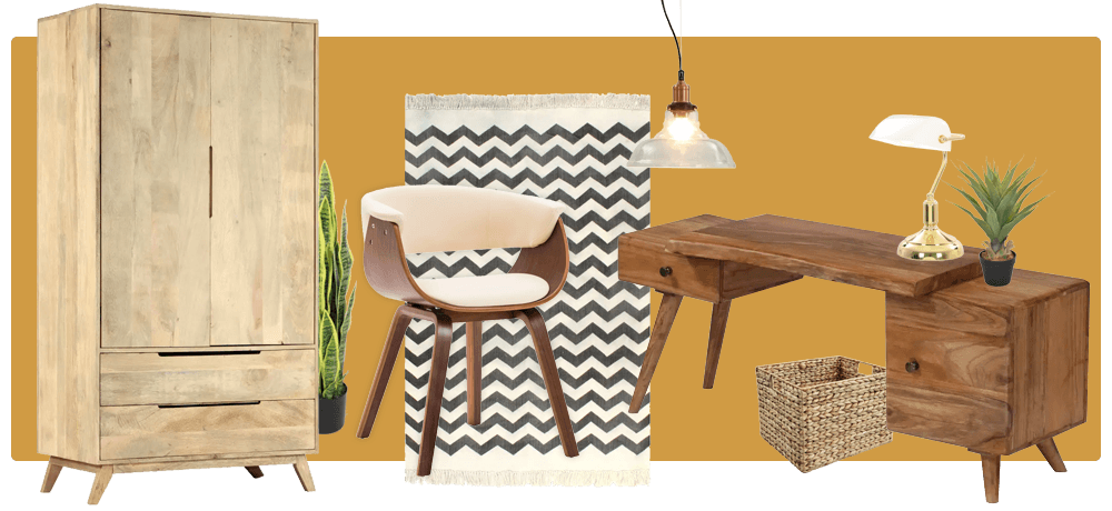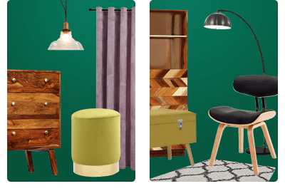 一つ、レトロなインテリアスタイルで見逃せないのは、家具や小物に見られる曲線を描く形状とソフトなライン。レトロ家具は先細りの脚や木を使っていることも特徴。明るい雰囲気の木材、ダークな感じの木材のどちらも、同じ部屋のインテリアで組み合わせることができます。レトロなインテリアデザインスタイルにフィットする素材は、木材、ラタン、プラスチック、コルク、ジュート、ウール、ベルベットなどです。