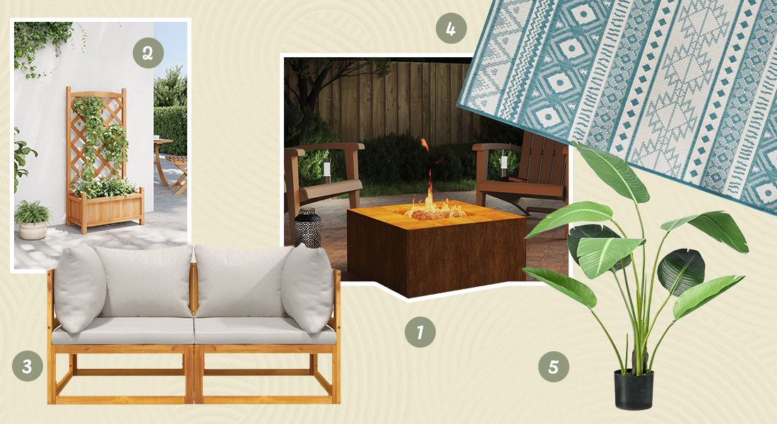 お庭のテクスチャーの世界に飛び込もう!噴水の穏やかな流れからクッションの心地よさまで、屋外リビングスペースのデザインをグレードアップさせましょう。
