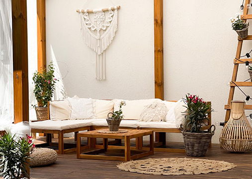 禅の境地は、自然に溢れた隠れ家にとって重要な要素。スローライフを叶えるために、人工観葉植物や日陰をつくるパラソル、心を落ち着かせる噴水などを中心に置いてみませんか。