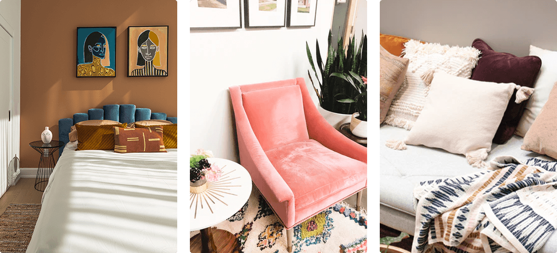 装飾としてベルベットを使うのが最高なのは、それがどこでにもフィットすること。すべての部屋、レイアウト、スタイル、家具の種類、どんな組み合わせにもぴったり。目立つピースを組み合わせて、大胆なデザインにすることもできます。あるいは、ベルベット感のあるアクセサリーを加えることで、さらに繊細な見た目を演出することもできます。最後に、コントラストを効かせることで、ベルベットのユニークなビジュアルをアピールします。